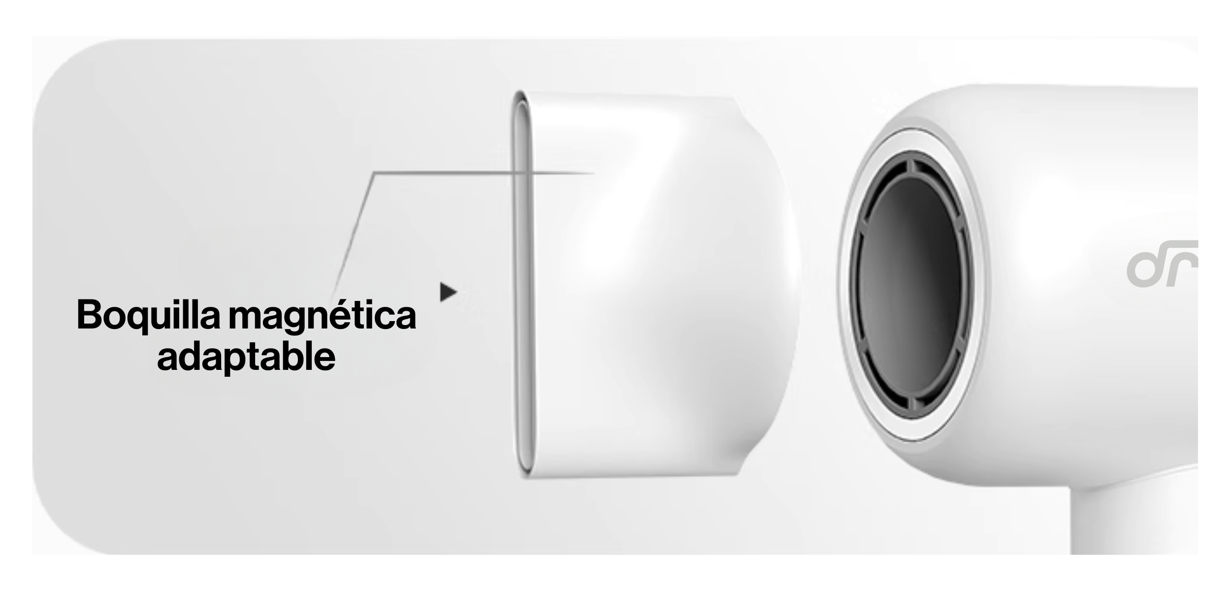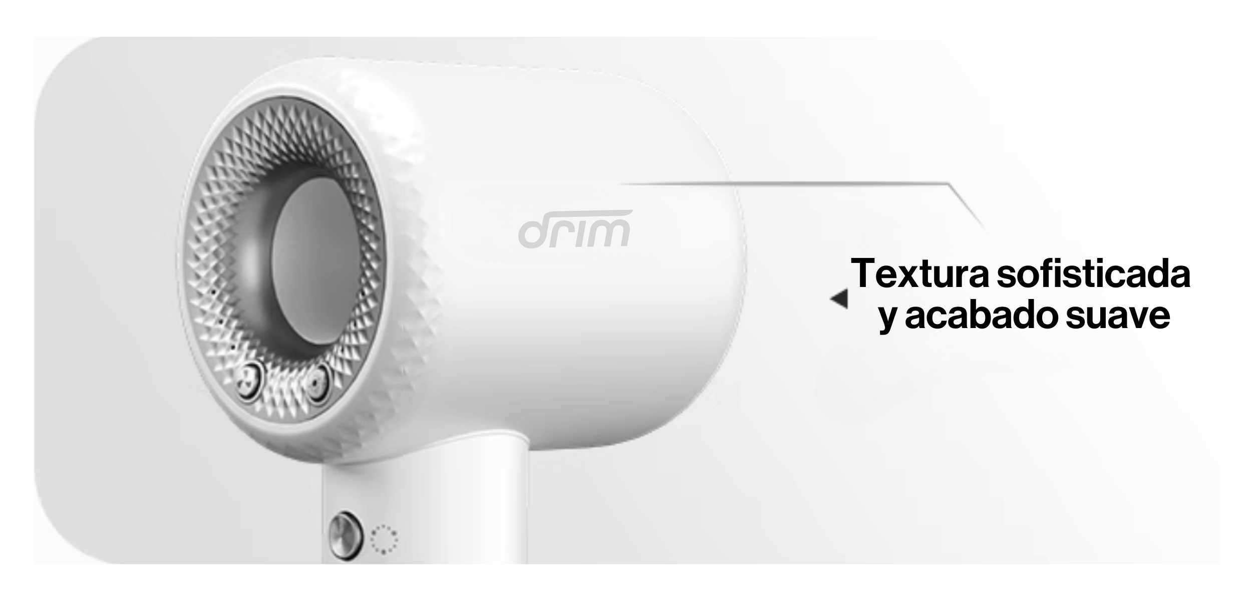 Secador supersónico Drim con ajuste automático de calor, potencia y accesorios, diseñado para potenciar el brillo natural de tu cabello y cuidar la salud del cuero cabelludo.